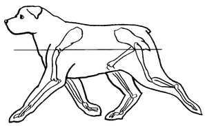 двухтактный аллюр, при котором собака совершенно одновременно поднимает и опускает то обе правые, то обе левые конечности, что ведет к покачиванию ее туловища), а при беге уметь перевести собаку на рысь (ритмичный двухтактный аллюр, при котором на землю одновременно ставятся две ноги, расположенные по диагонали на противоположных концах туловища)