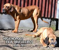 Папа - Higienopolis Dragao, рожденный 10.12.2002 года, на Украину был импортирован из Финляндии, с известного, на тот момент, питоминка Canil Higienopolis, от заводчика Marco Numen (в породе с 1991 года). Приверженца Кафибовских собак. Он сам писал: "более чем 20-летний опыт работы Fila Brasileiros. Уникальные родословные ФИЛА от бразильских сельскохозяйственных рабочих штата Минас-Жерайс (Sangue de Filas de Fazendas ou Fila Boiadeiros ou Cabeçudos)".