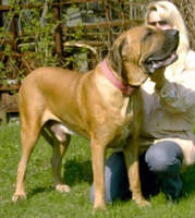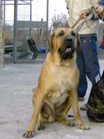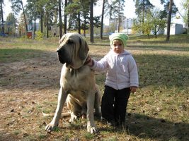 Первая встреча у нас была с мамой Латифой. Сука была крупная, красивого палевого окраса, хотя внимательно рассмотреть в тот момент мы не могли, она очень яро бросалась на нас, защищая свою территорию и своих детей. Потом поехали смотреть папу, он нас покорил и впечатлил своими размерами (я очень хорошо помню ту нашу встречу). Собака огромных размеров, как нам тогда казалось, красивого ярко рыжего окраса, с большой и массивной головой, такими лапами, что я тут же ощутила себя "Дюймовочкой". Он был очень спокоен, обнюхав меня сел рядом, но все время косился на мужа, видимо я, своими размерами, не представляла опастности или угрозы. После Наташа сказала, что он больше не долюбливает мужчин. Пообщавшись и насмотревшись собак, домой мы ехали удовлетворенные и точно были уверена, что берем щенка этой породой и от этих родителей.