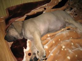 Родился наш Буцефал 9.12.2008 года, в помете было 2 мальчика (палевого и рыжего окраса) и 3 девочки. Настроены мы были только на мальчика, но заводчик настаивал, чтобы мы взяли девочку, обьяснив, что для новичка в породе, намного проще будет справляться с девочкой. Но, так как у меня уже был опыт с двумя мальчишками, правда другой породы, мы настояли только на кобеле. Особо выбирать не пришллось, два кобеля разного окраса, выбрали самого спокойного, он же был самым крупным среди всех.