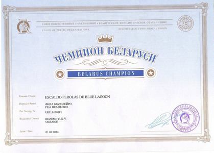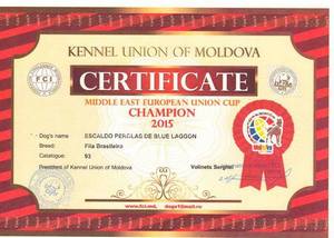 - R.CACIB (Reserve Candidate to International Champion) резервный Кандидат в международные Чемпионы. Этот сертификат также получают собаки, занявшие второе место за победителями (лучшей сукой и лучшим кобелем).