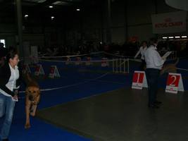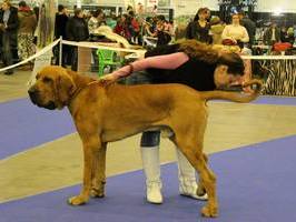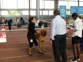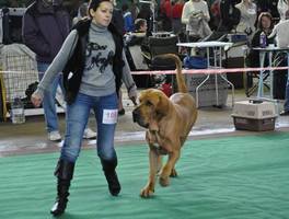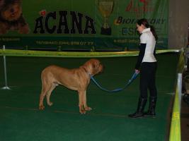На первой выставке (ему было 8 месяцев) он вел себя спокойно, в ринге хорошо стоял и бегал. Сама атмосфера вряд ли ему приглянулась, но держался молодцом. Позже ходить на выставки с ним было с одной стороны легко, он прекрасно выставлялся, был куражным, никогда не зажимался, ему нравилось со мной работать, бегал легко и свободно. Движения у него были всегда легкие, будто пархал над землей, часто стоял в свобожной стойке, что было удобно. Но вот очень сильный контроль хозяина в ринге (эксперты и выставочная бригада) и другие собаки рядом (возле ринга, за рингом и в ринге) делали нашу с ним работу сложной, так как приходилось очень сильно концентрироваться на собаке, крепко держать ринговку, ибо в любой момент он мог резко среагировать на что угодно и кого угодно. Нетерпимость к собакам не давало нам возможности ходить на бесты, не хотела рисковать. Видя характер Эскальдо я поняла, что выставляться мы сможем только в юниорах, пока еще молодой, так как с возрастом напор становился сильнее, броски напористей, больше силы, уверенности и мощи. Вот почему почти вся выставочная карьера пришлась на класс юниоров. Выставлять взрослую филу, очень темпераментную всегда тяжело. Соотношения роста и веса хозяина и собаки слишком разные (это я в частности о себе), поэтому мы смогли закрыть ему титул, о котором давно мечтала ( Интерчемпион ) и спокойно закончить выставочную карьеру.