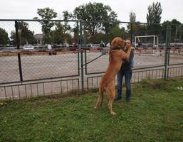 Эскальдо был по характеру намного активней, нежели наша первая фила и вспыльчивей к другим собакам, вернее раньше стал таковым. Посещать выставки с ним я тоже собиралась, теперь только уже имея небольшой опыт и знания. В начале занималась дома сама, а потом пошла к нашему любимому учителю, повторить забытое ринговочное дело. Видя характер Эскальдо, я знала, что ему полезно будет позаниматься в помещении с другими собаками (атмосфера близка к выставочной), поэтому записывались пару раз на групповое, а после только на индивидуальные заняти.