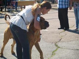 Многие не хотят водить собаку на выставку, аргументируя, мы брали для себя (я всегда очень смеюсь с этой фразы, так как это самое глупое обьяснение), все мы приобретаем собаку конечно же для себя, как любимца и члена семьи, который будет нас радовать и охранять, выполняя свои породные функции, но это не мешает нам (и не должно мешать) сводить собваку на выставку. Многие люди даже не слышали о породе фила бразилейро, большинство не видели в живую, лишь на картинках в инете, поэтому иногда важно, чтобы некоторые хозяева водили собак на выставки. Это послужит для собаки дополнительной социализацией, если мы говорим о молодой собаке, возможность получить описание от экспертом международного класса, познакомится с другими хозаевами и даже заводчиками, обменяться опытом, получить ответы на некоторые вопросы (как пример), кто-то приходить даже найти жениха для своей девочки, кто -то присмотрев собаку решает завести щенка. Так что от самой выставки можно найти положительные моменты и нужные, но не всегда конечно.
